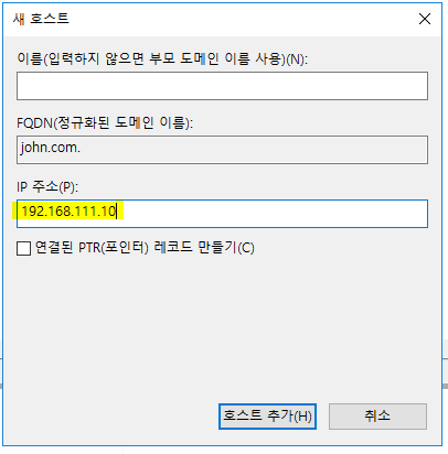 - 도메인에서 우클릭하여 '새 호스트'를 클릭한다.