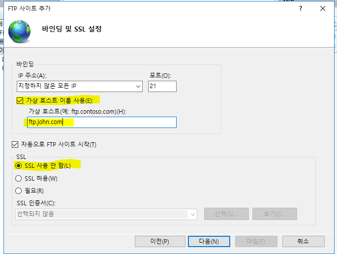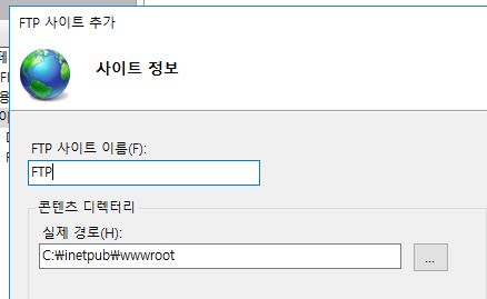 - IIS 관리자에서 FTP 사이트를 추가한다.
