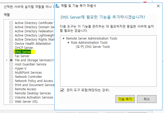 - 윈도우 로고 왼쪽 클릭 > 서버 관리자 > 역활 및 기능 추가
