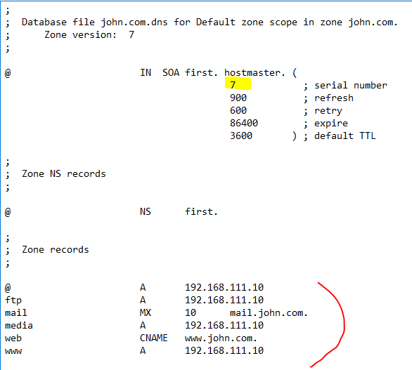 - john.com.dns를 메모장으로 열어내용을 확인한다.