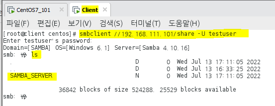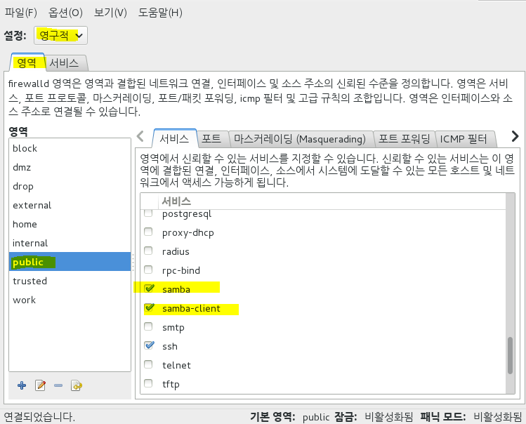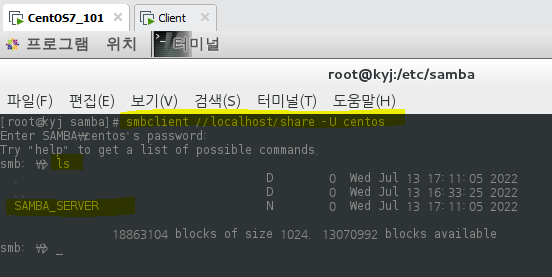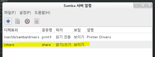 - 리눅스 클라이언트에서 삼바 영역에 접근할 수 있도록 설정