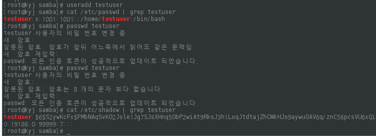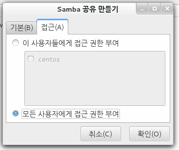 * system-config-samba는 그래픽컬하게 해주는 패키지라 cli환경에서는 안될 수 있다.