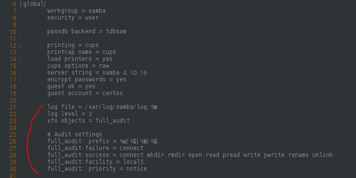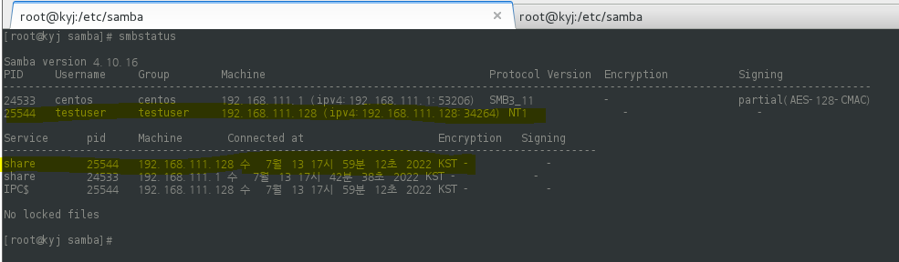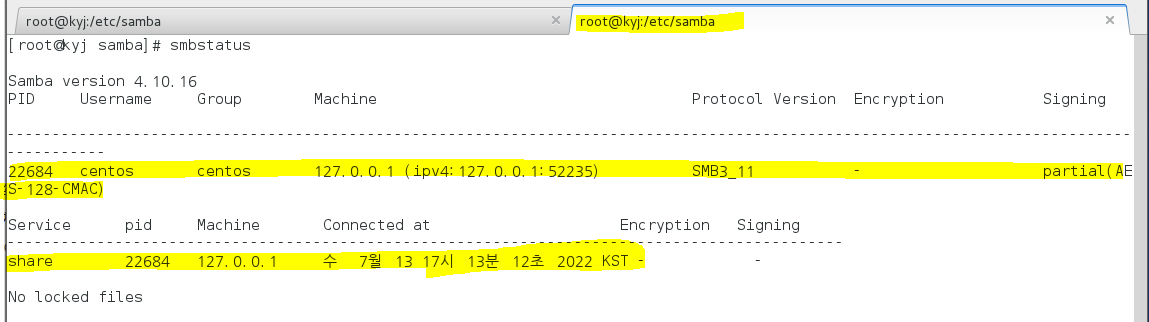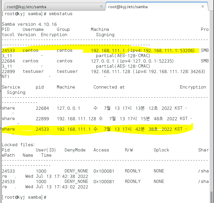 - share부분이 conf파일에서는 4줄이었는데 testparm으로 확인하면 2줄만 나온다.