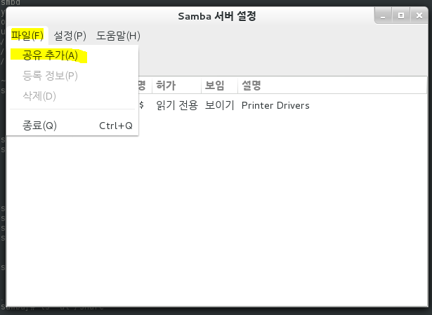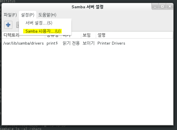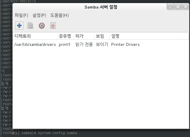 / gui환경이므로 'system-config-samba'를 이용해 설정을 할것이다.