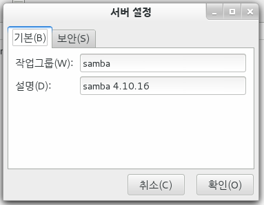 - 다시 'system-config-samba'를 실행하고 '서버 설정'에 들어간다.