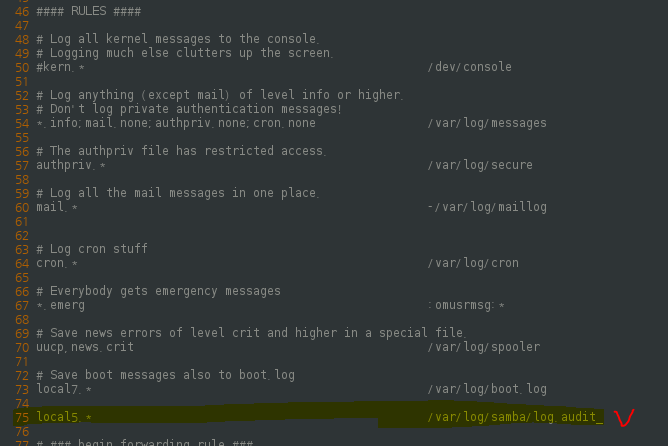 - rsyslog.conf의 RULES쪽에도 추가해준다.