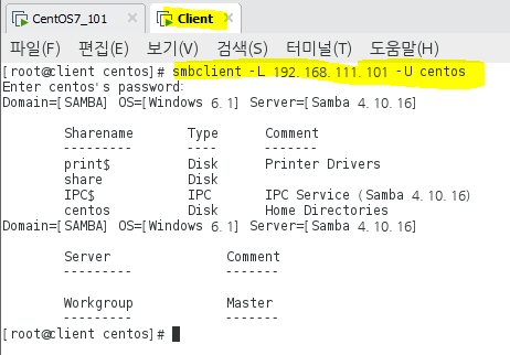 / 리눅스 클라이언트에서 접속확인을 해본다.
