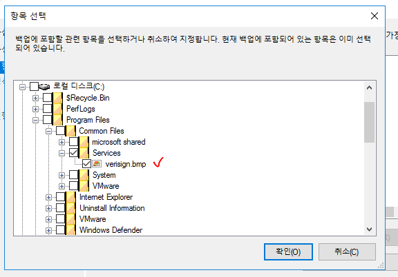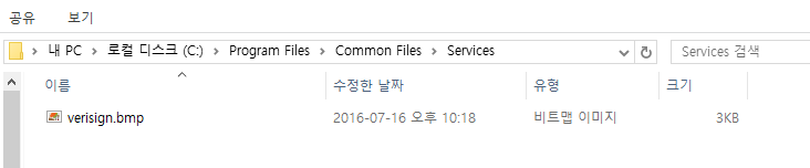- c 드라이브 확장 > 프로그램 파일즈 확장 > Common Files 확장 > Services 밑에 verisign.bmp 선택