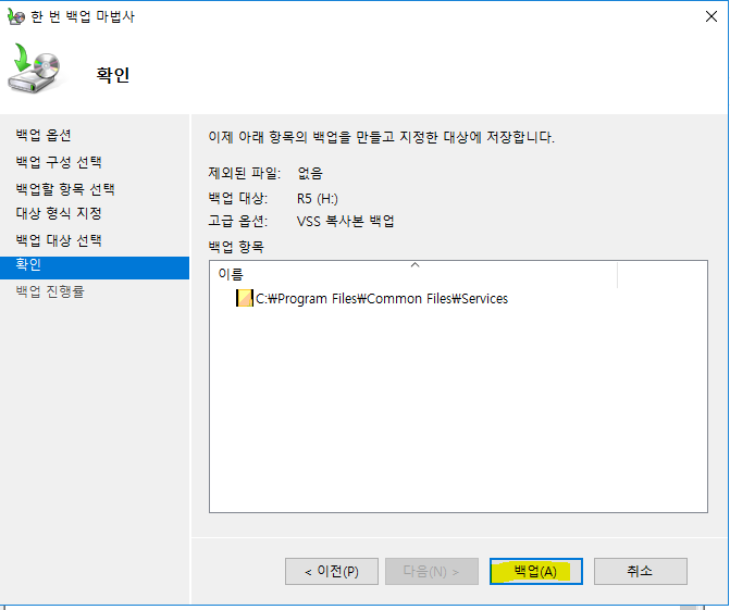 - 실행창 > wbadmin.msc