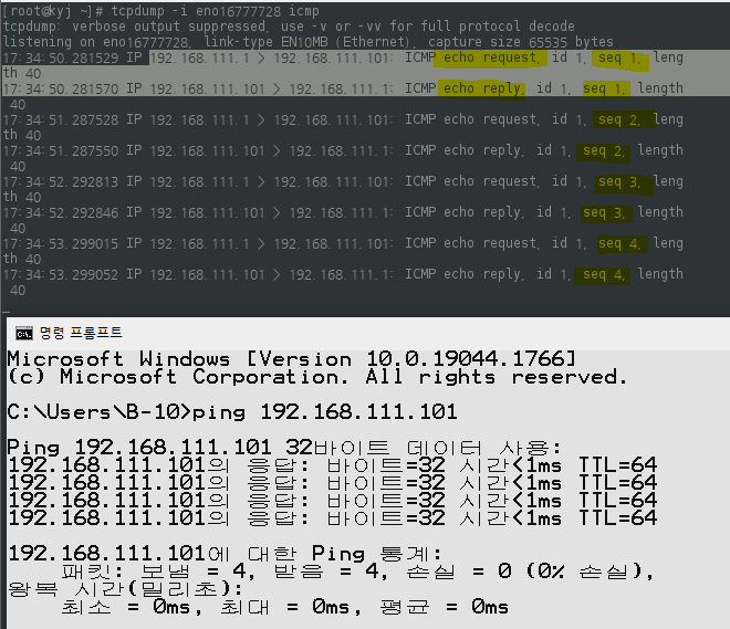 - icmp tcpdump 실습