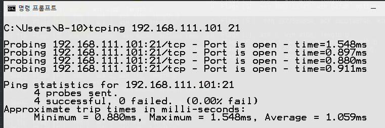 - pc에서는 tcping을 던진다.