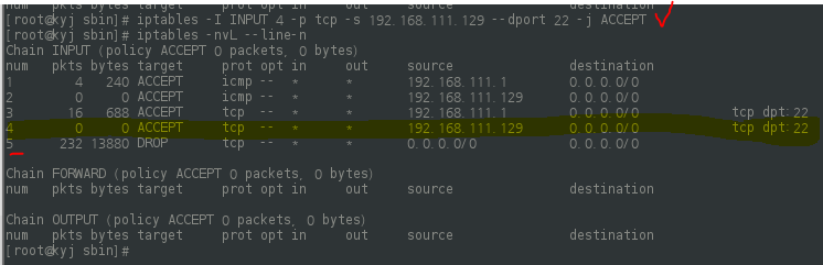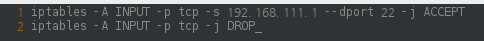 iptables -A INPUT -p tcp -s 192.168.111.1 --dport 22 -j ACCEPT