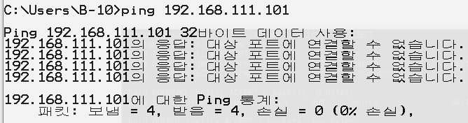 - 이제 호스트pc에서는 ping이 가는데 클라이언트 pc에서는 ping이 안 간다.