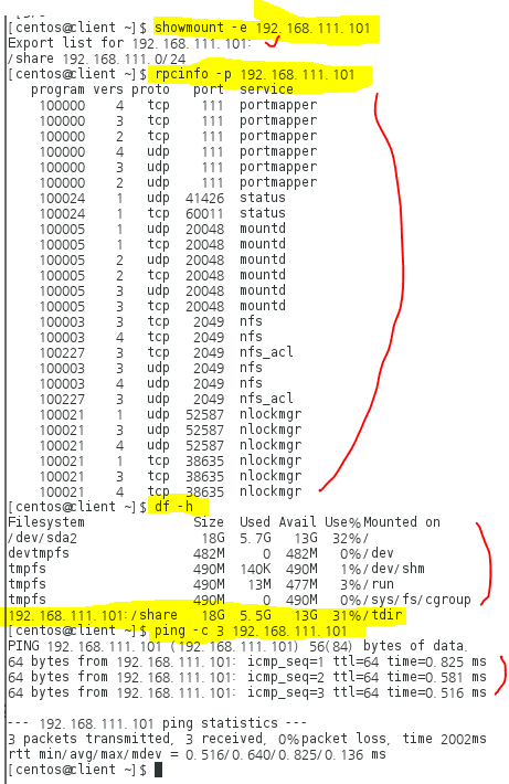# mount -t nfs 192.168.111.101:/share /tdir