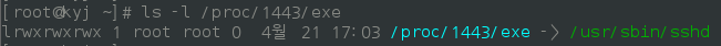 # ls -l /proc/프로세스번호/exe : 해당 연결되는 프로세스를 찾을 수 있다.