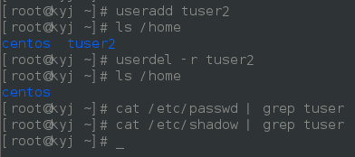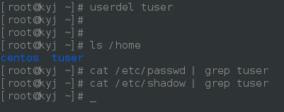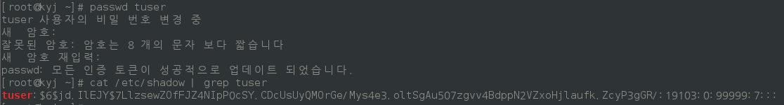 - userdel -r 사용자이름 : 사용자 홈 디렉토리까지 지운다.