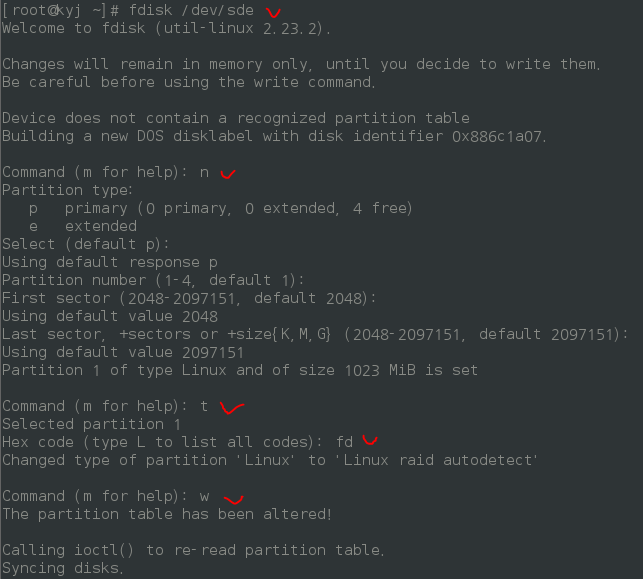 - sdd, sde를 fdisk한다.