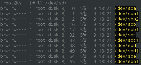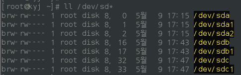 - ll /dev/sd*로도 새로 추가한 하드디스크를 확인할 수 있다.