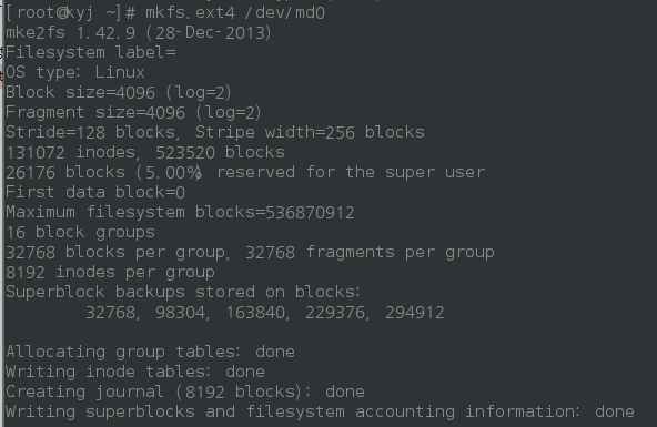 # mkfs.ext4 /dev/md1