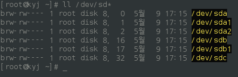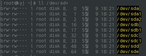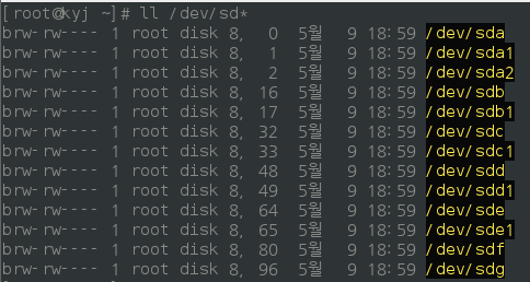 - 'll /dev/sd*'로 확인할 수 있다.