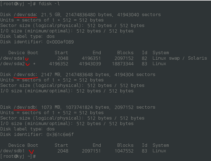 - 'll /dev/sd*'에서도 확인해본다.