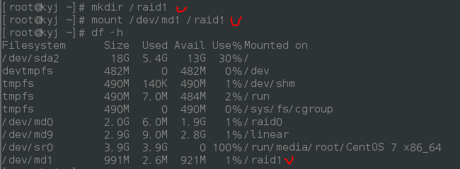 - 마운트를 하고 'df -h'를 하면 raid1로 구성한 하드디스크가 확인된다.