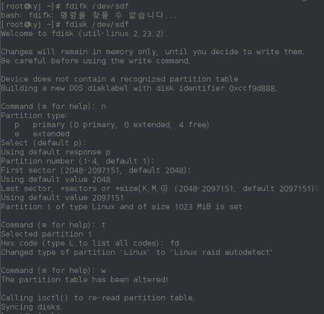 - fdisk를 raid용으로 파티셔닝해야 한다.
