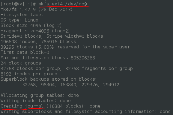 - 이제 md9에 대해서 mkfs.ext4를 한다.