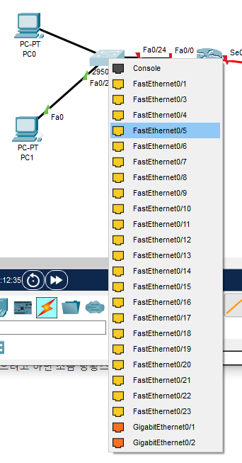 연습할때는 보통 pc들은 FastEthernet0/1부터 차례대로 꽂는다.