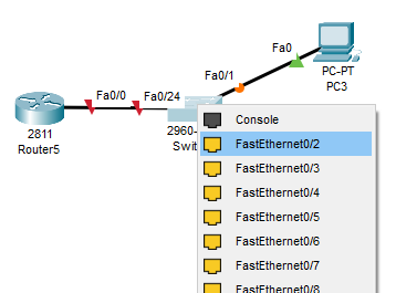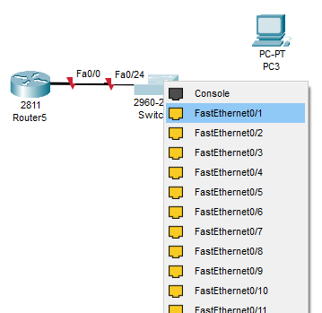 그리고 이번에는 'FastEthernet0/1'을 선택한다.