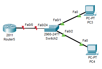 참고할것은 스위치를 라우터에 연결할때는 'FastEthernet0/24'부터 꼽기 시작하고