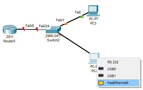 여러 항목이 나오는데 그 중 'FastEthernet0/0'포트를 선택한다.