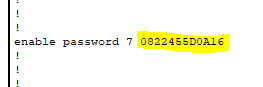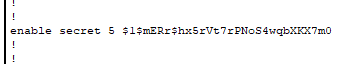 (config) # enable password 비밀번호 (비밀번호가 암호화되서 저장됨)
