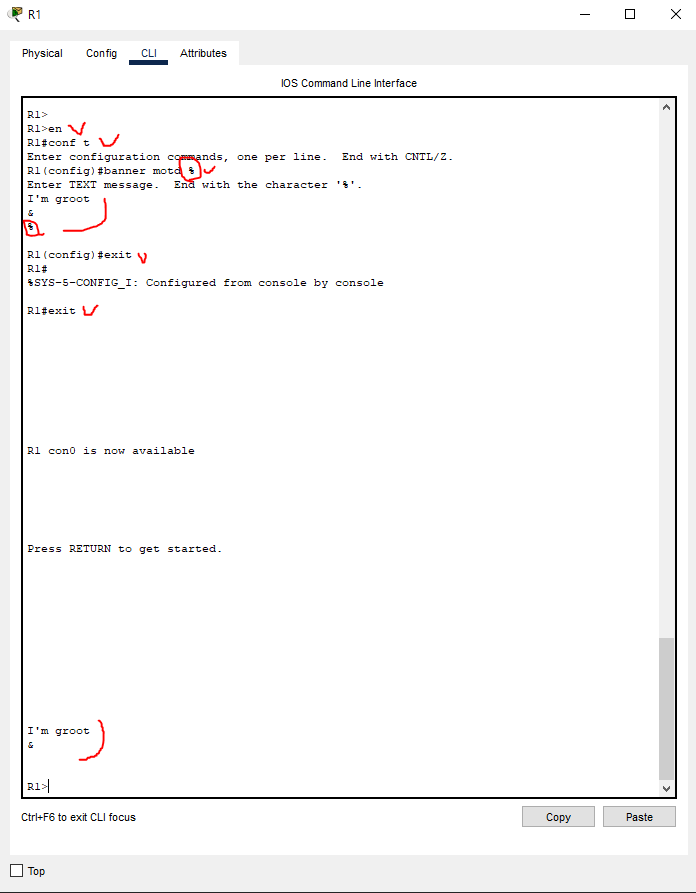 (config-line) # login (비밀번호를 적어야 들어올 수 있게 지정)