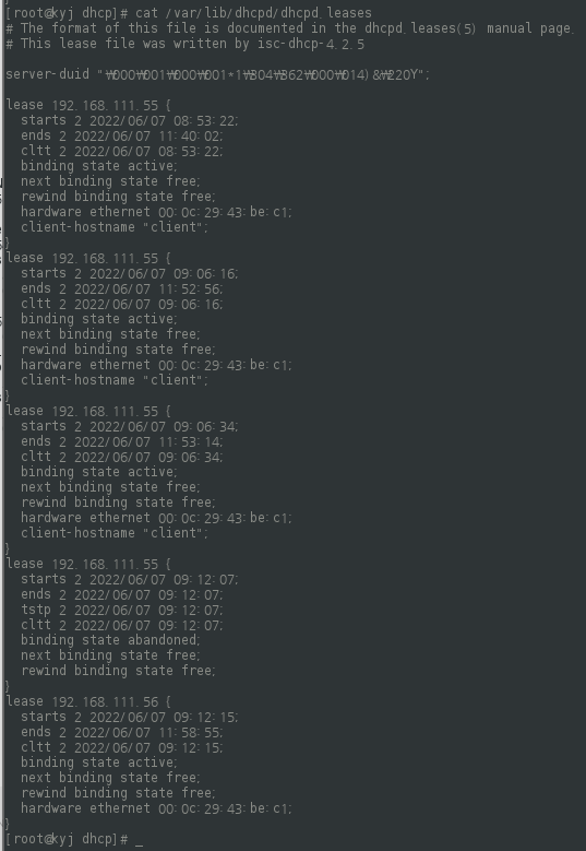 # cat /var/lib/dhcpd/dhcpd.leases