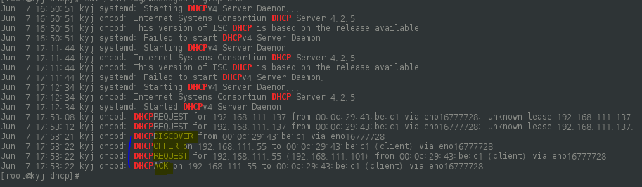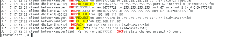 # cat /var/log/messages | grep DHCP