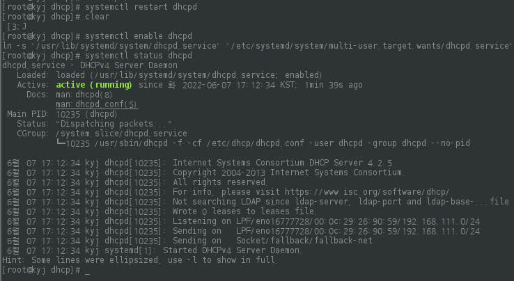 # systemctl restart dhcpd