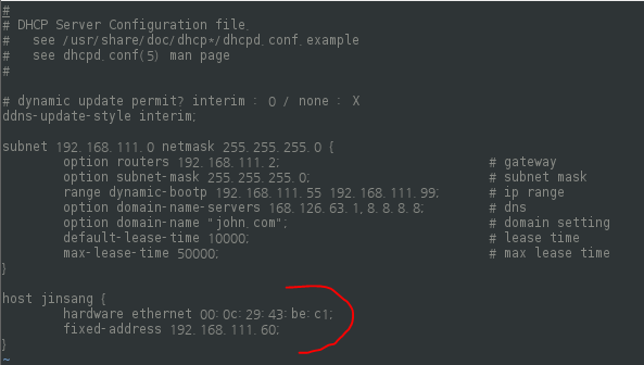 - 서버에서 dhcpd.conf 설정