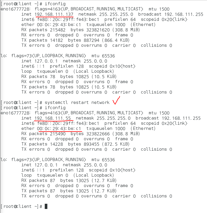 # systemctl restart network