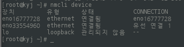 - 이름이 한글로 '유선연결'이었는데 밑에있는 'eno33554960'으로 변경햇다.