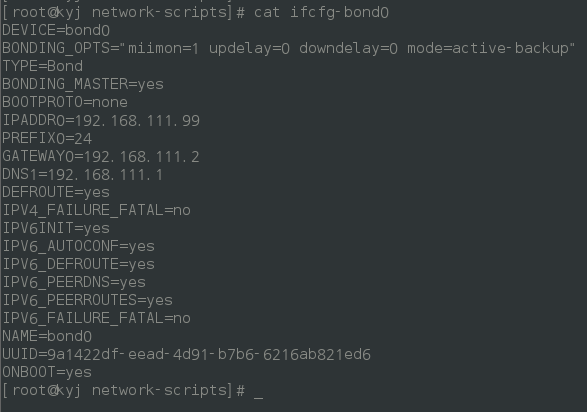 - cat bond0을 하면 내용을 확인할 수 없다. 본딩 설정했던게 모두 날라갔기 때문이다.