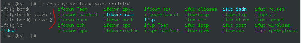 - /etc/sysconfig/network-scripts에서 파일 목록을 확인해도 bond0이 생성되어 있다.