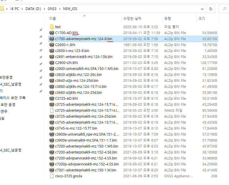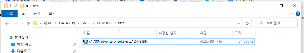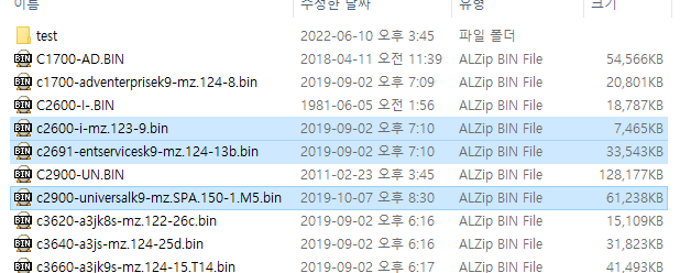 - c1700-adventerprisek9-mz.124-8.bin을 test에 놓고 압축을 푼다음