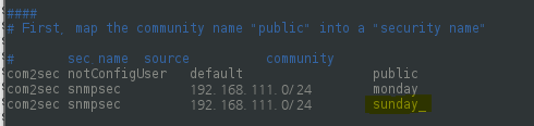 - com2sec : snmp 문법 중 일부. 항상 들어가 있어야 한다.