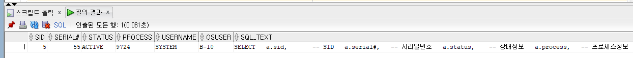 > 데이터베이스 프로세스와 세션 정보