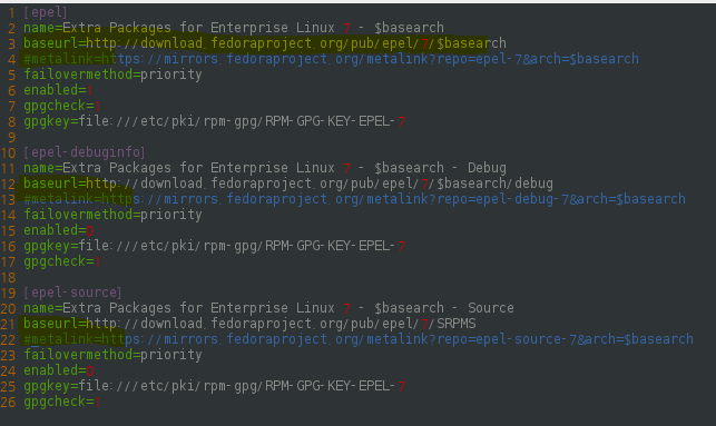 - baseurl앞의 #을 지우고, metalink에 #을 추가한다.