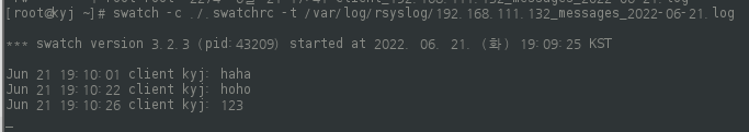 # swatch -c ./.swatchrc -t /var/log/rsyslog/192.168.111.132_messages_2022-06-21.log