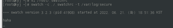 - /root/.swatchrc파일을 바라보고 설정파일을 적용한다.