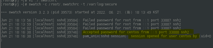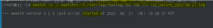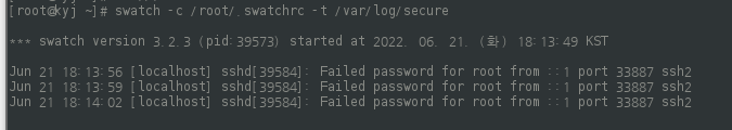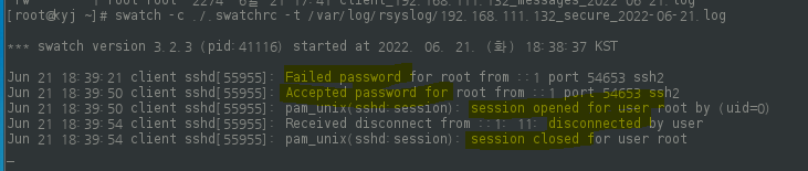 # swatch -c ./.swatchrc -t /var/log/rsyslog/192.168.111.132_secure_2022-06-21.log