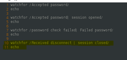 # swatch -c /root/.swatchrc -t /var/log/secure